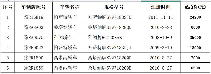 帕薩特、雅閣、桑塔納牌車輛一批(整體拍賣)